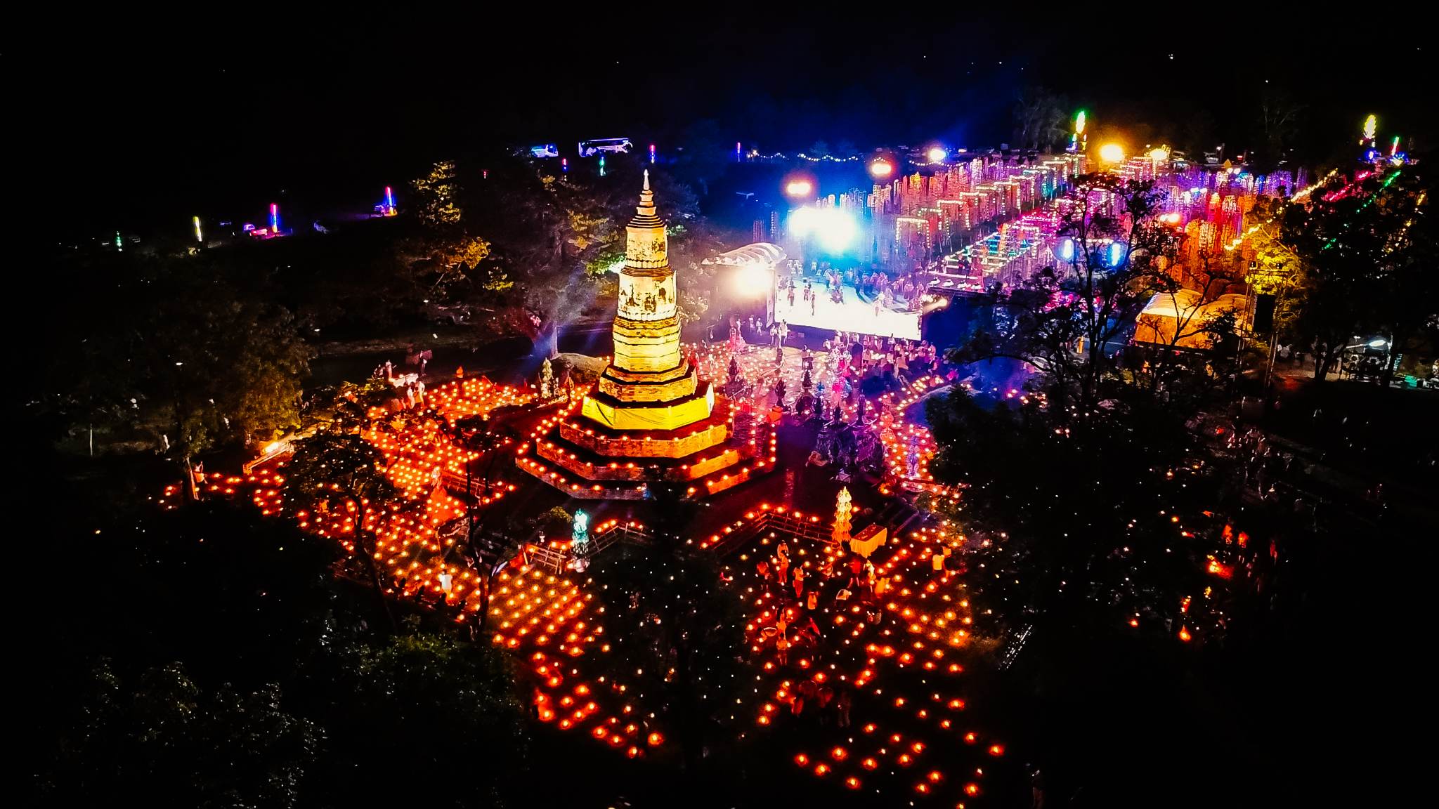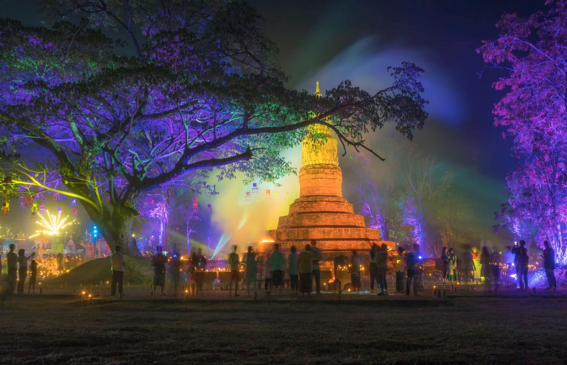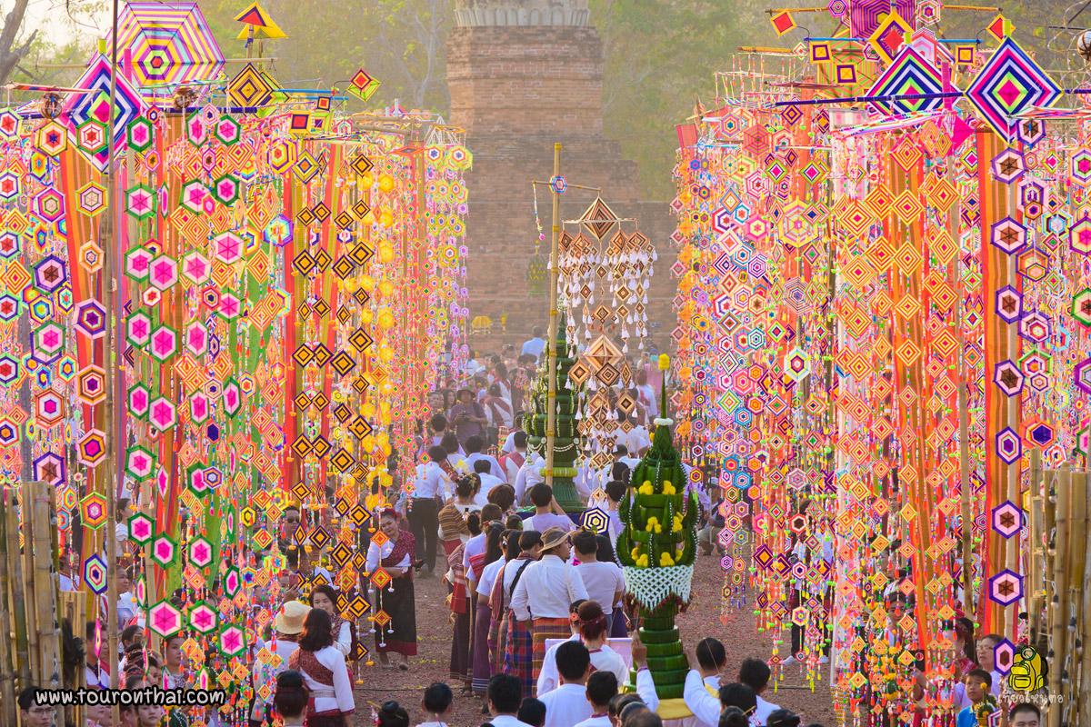 มาฆปูรมี ทวารวดีมิ่งหล้าเมืองฟ้าแดดสงยาง ประเพณีด้วยการถวายธุงและจุดมาฆประทีปถวายเป็นพุทธบูชาธรรมบูชาสังฆบูชาท่ามกลางบรรยากาศคืนเพ็ญเดือนมาฆะวันสำคัญทางพระพุทธศาสนาของไทย. ณ. พระธาตุยาคู อำเภออำเภอกมลาไสย จังหวัดกาฬสินธุ์